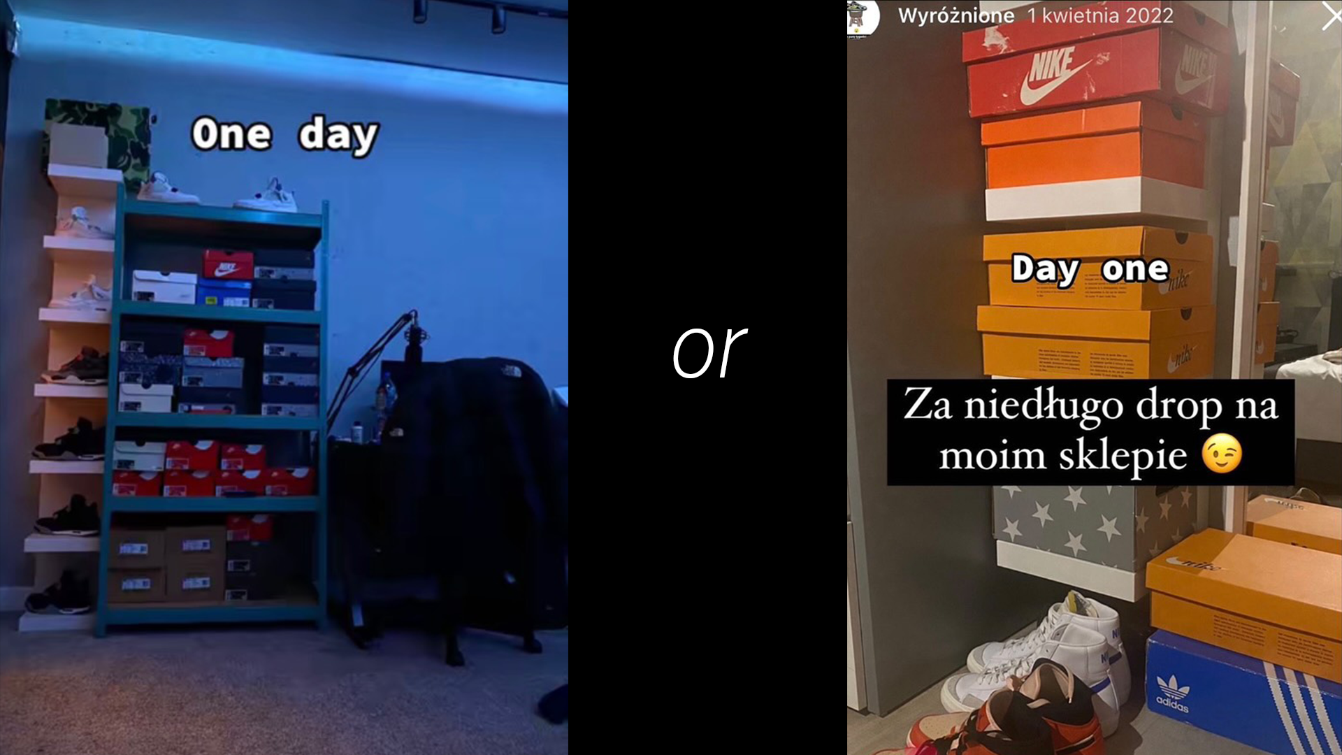 Start trzy lata temu nie był łatwy — zaczynałem od zwykłych nike za 20 zł z lumpeksu, a z czasem doszedłem do zatowarowania wartego nawet kilkanaście tysięcy na raz.